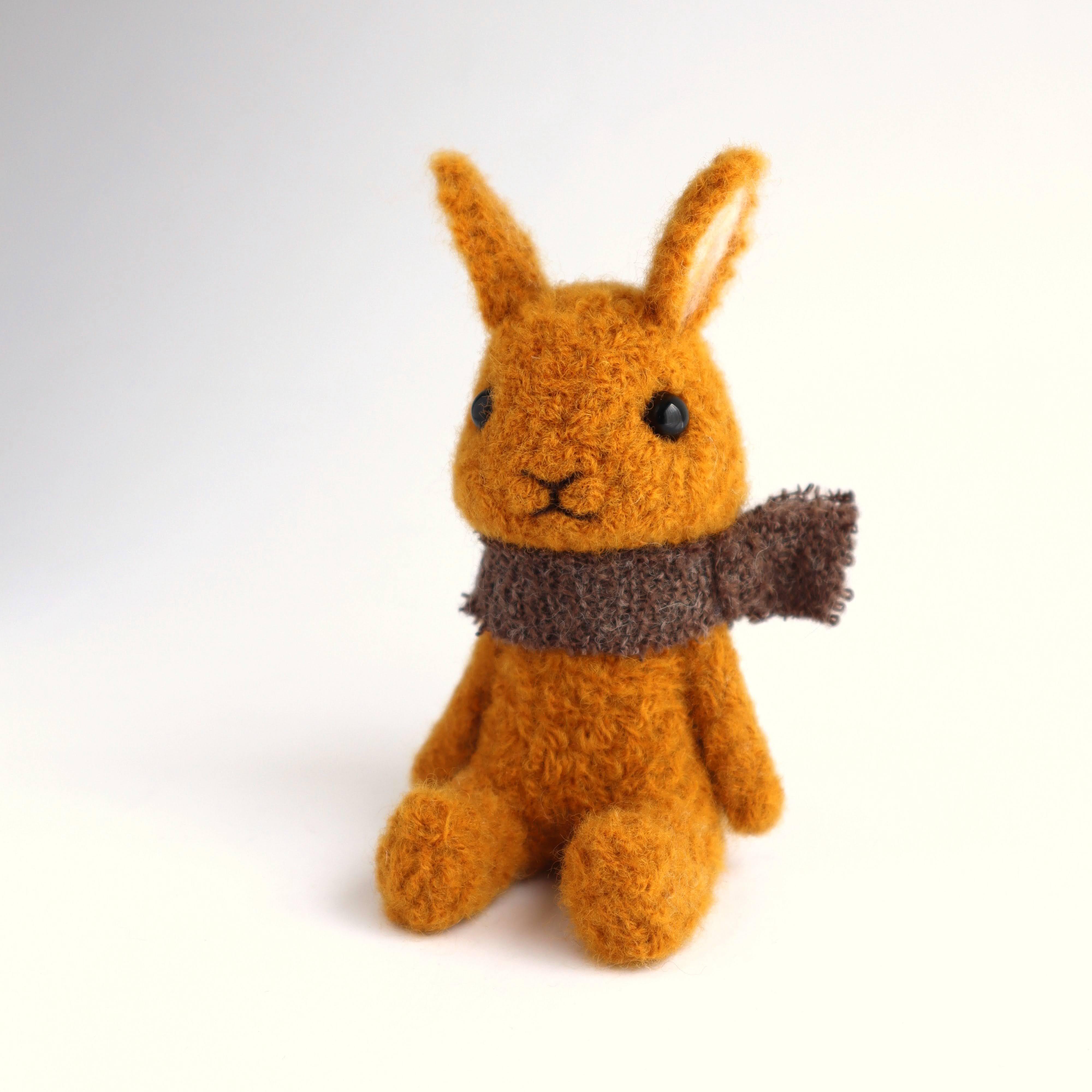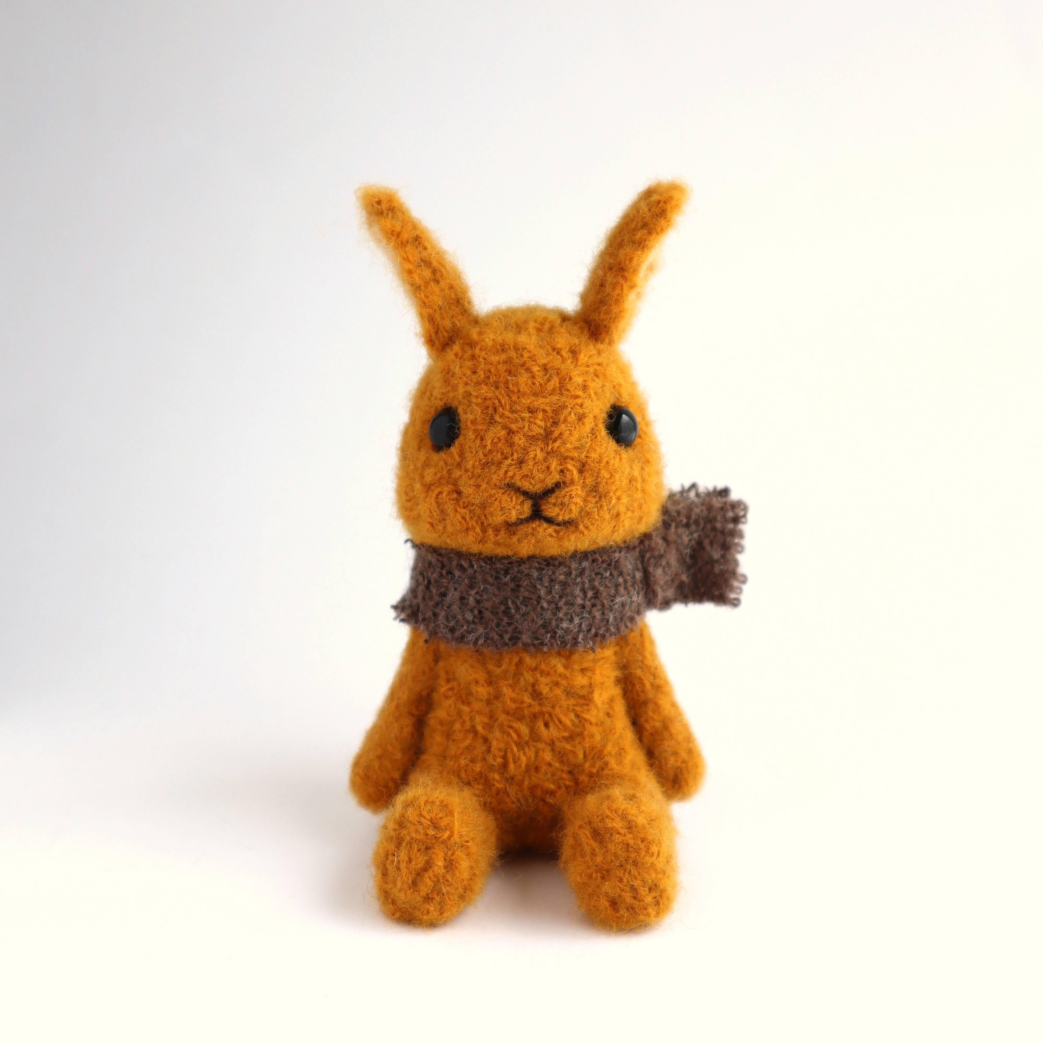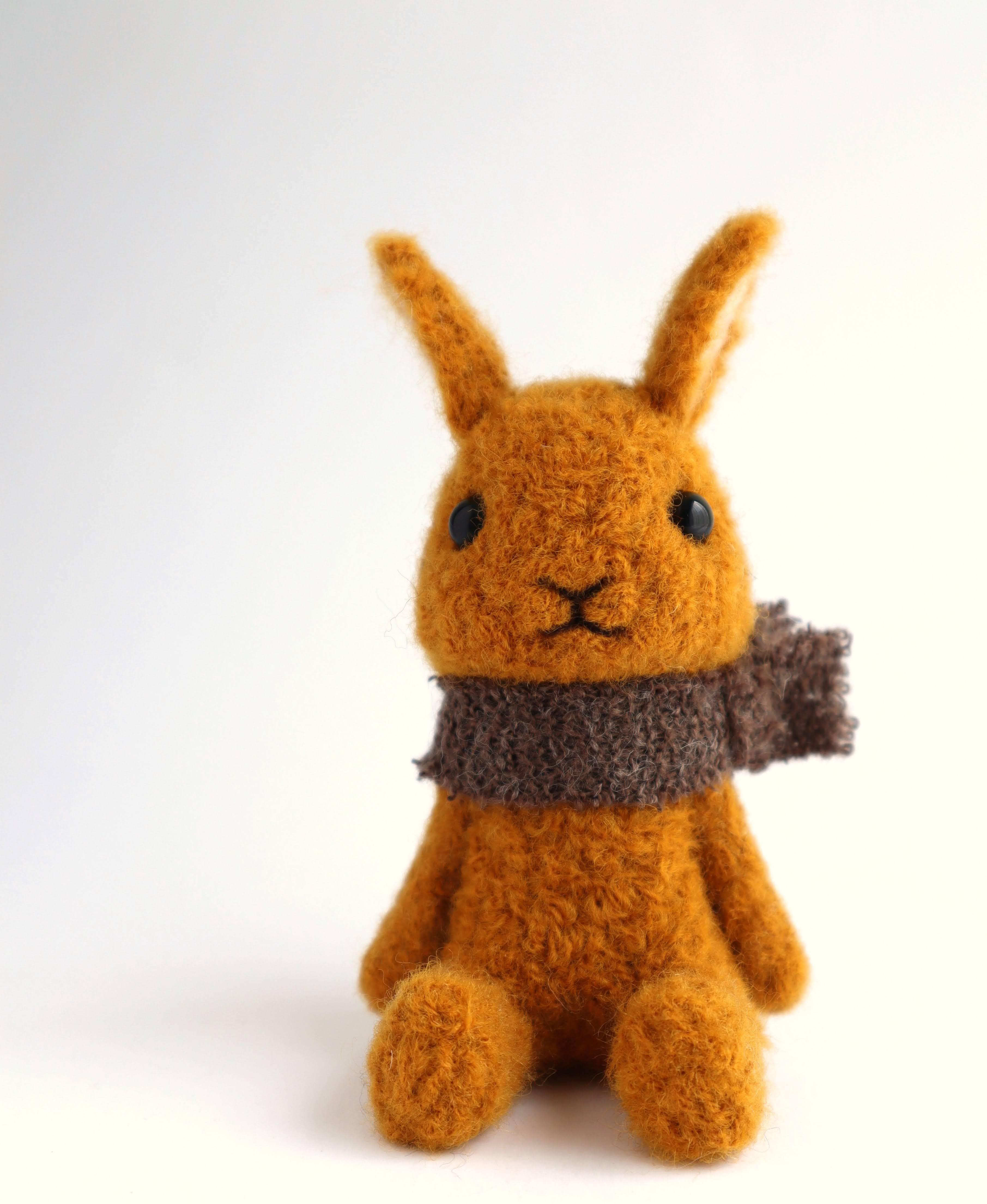 ウサギのスカーフは、古びた雰囲気を出すため、生地をほつれさせています。